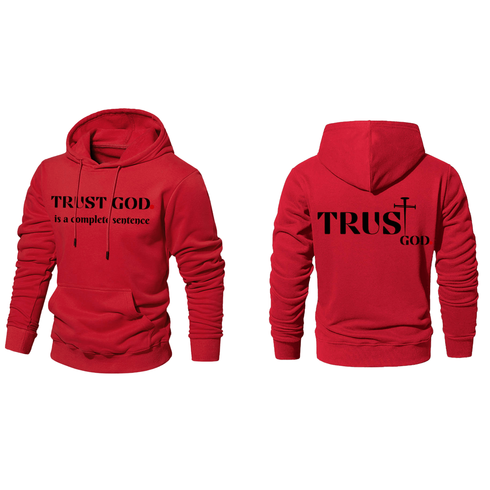 ❤️ Stand firm. Stay bold. Trust God. The Trust God Hoodie in striking red is more than just a hoodie—it’s a statement of unwavering faith and fearless confidence. Whether you're out and about or staying cozy, this hoodie keeps you warm while reminding you (and others) to trust in God's plan.